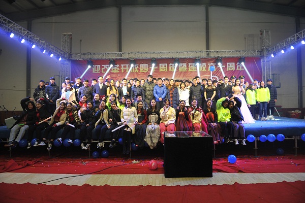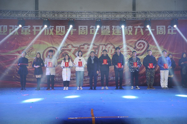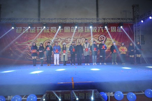 2018年是改革开放40周年,是郑州大学体育学院建校60周年,在这个辞旧迎新,一元复始,万象更新的美好日子里,登封校区举行了2018年“欢庆改革开放四十周年暨校庆六十周年”元旦文艺晚会。登封校区党总支书记张广明、登封校区主任胡玉玺,登封校区党总支副书记郜攀峰及校区全体师生参加了本次晚会。张广明书记代表校区致辞,校区领导张广明、胡玉玺、郜攀峰为2018级表现突出的学生干部、班级集体及优秀个人颁奖并合影留念。