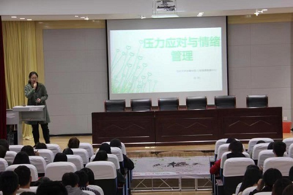 10月19日上午10点30分,学院大学生心理健康教育——“压力应对与情绪管理”专题讲座在校区报告厅进行,各班学生代表和心理委员与会。
