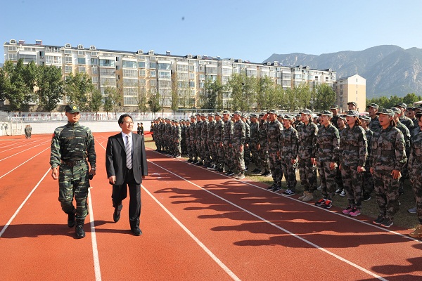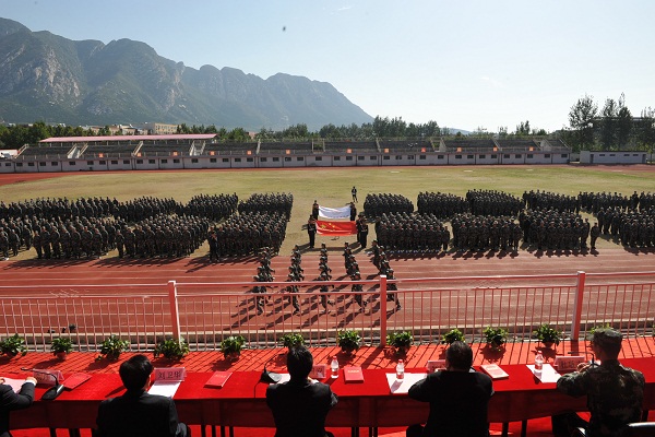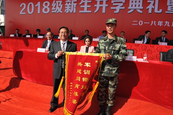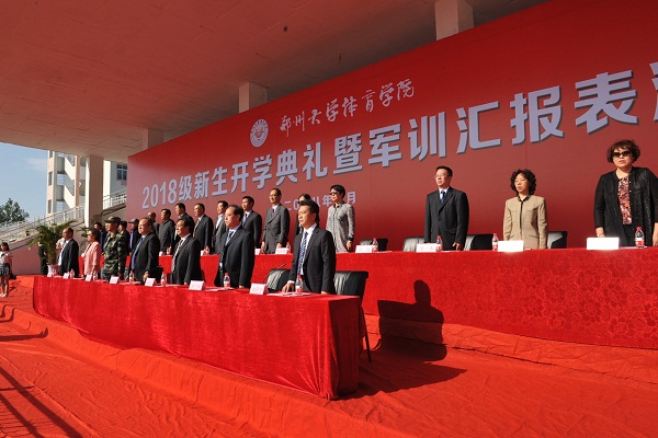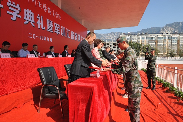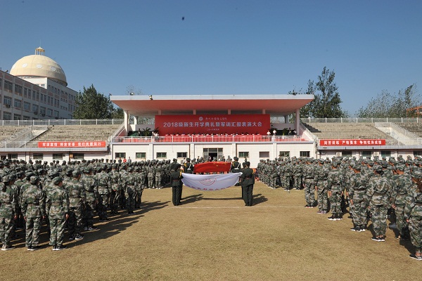 9月21日上午9点,我院2018级新生开学典礼暨军训汇报表演大会在登封校区田径场隆重举行。我院党委书记张绍通,院长杨国安,副院长刘卫华、周毅刚,院党委副书记、工会主席刘丹宁,院纪委书记郑焕民,武警某部第八支队参谋长杜敬志,院属相关职能部门、各系、登封校区负责同志,全体军训教官、校区全体教职工及大一新生参加大会。会议由院党委副书记、工会主席刘丹宁主持,杨国安院长检阅方队阅兵式并代表学院向承训的武警某部第八支队赠送感谢锦旗,副院长刘卫华宣读关于表彰2018级新生军训先进集体和个人的决定,院党委书记张绍通作总结讲话。