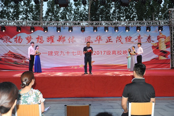 为纪念建党97周年,弘扬青春正能量,展示新时期郑体学子的良好精神风貌,6月28日晚登封校区“激扬梦想耀郑体,风华正茂绽青春”庆七一建党九十七周年暨2017级离校晚会在校区圆形广场拉开帷幕,校区领导,院团委、登封校区相关工作人员及校区全体师生参加晚会。校区党总支书记代表校区致辞,希望2017级的同学能够朝着自己的梦想继续努力,面对未来人生的征途,能够不忘初心,牢记使命,砥砺前行!