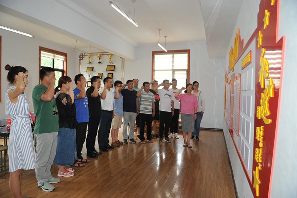 党课结束后,由校区党总支副书记郜攀峰带领全体党员面对鲜红的党旗,重温入党誓词,铭记党的奋斗历史,回顾入党时的崇高理想和奋斗目标,不忘初心,牢记使命。