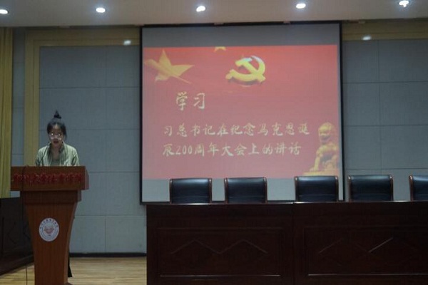 习近平总书记在讲话中深切缅怀了马克思的伟大人格和历史功绩,并着重强调,要紧紧围绕培养中国特色社会主义合格建设者和可靠接班人的根本任务,把马克思主义信仰作为鲜亮底色,以立德为基础,以树人为根本,认真做好新时代党的青年群众工作,为培养造就担当民族复兴大任的时代新人作出独特贡献。报告会结束后,同学们又观看了纪录片《厉害了,我的国》,让同学们更加深入理解我国科技与人文的飞速蓬勃发展,激励着同学们拼搏向上、不断进取。