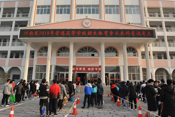 3 月26日 ,2018年河南省普通高校体育专业招生术科考试在我院登封校区拉开帷幕。本年度体育专业高招共有来自我省18个省辖市近30000名考生参加考试,分17批次,自 3月 26日至 4月 12日,历时18天。
