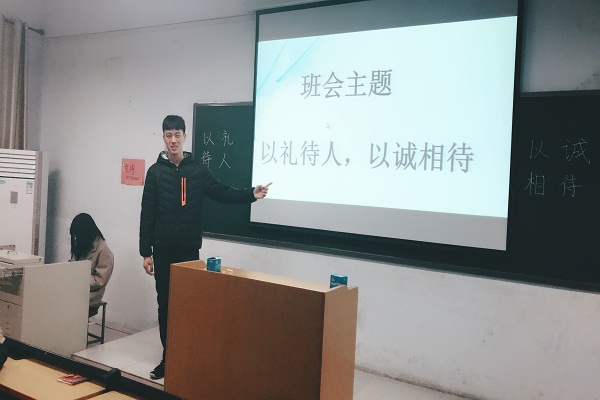 2018年3月18日晚18点,登封校区各班级在教学楼召开“以礼待人,以诚相待”主题班会,此次班会由各班辅导员主持召开。