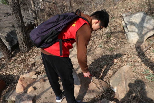 身着红色志愿服的校区青年志愿者成为嵩山景区里的一抹“宁静红”。沐浴着春风,青年志愿者们沿着登山主干道,捡拾登山干道两旁的果皮、纸屑、食品包装袋等垃圾,并且向身边的游客倡导不要乱扔垃圾。