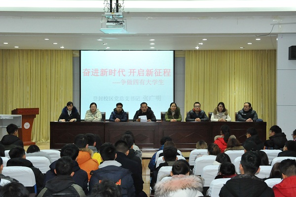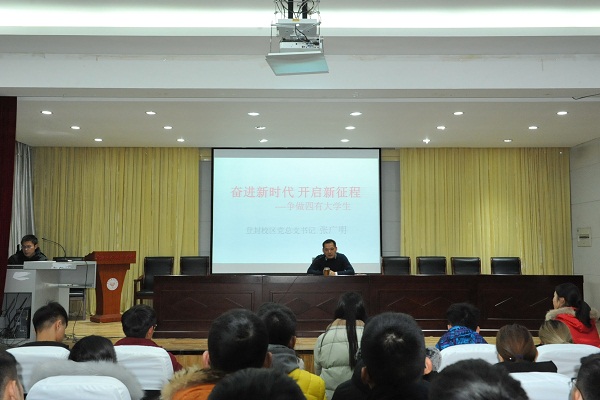1月4日晚上19时整,登封校区2017级“MMD”政治理论学习班开班仪式在教学楼阶梯教室举行。校区党总支书记张广明,校区党总支副书记郜攀峰,校区团总支老师毛雅娟、袁宇宁及各系辅导员参加了此次开班仪式,校区300余名学生参加此次理论课程学习。