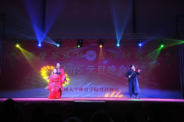 本次晚会围绕“璀璨郑体梦,相约同起航”这一主题展开,分为“声声郑体魂”、“亘古武术乡”、“梦萦嵩山情”、“谱绘中华韵”四个部分。来自少林延泽演艺团的气势磅礴的鼓舞表演《五战鼓》,拉开了晚会的序幕;柔美奔放,热情似火的拉丁舞表演《热力节奏》使同学们热情高涨;优雅婉转、韵味十足的小提琴独奏《梁祝》以真挚的情感,征服了台下的观众;少林延泽演艺团精彩绝伦的激光彩灯舞《炫舞激光》表演,嗨翻全场;刚劲有力的武术表演《群英荟萃,民族武魂》,以势如破竹之姿态显扬了博大精深的中华武术的魅力;风趣幽默的哑剧《举手之间》给师生带来接连不断的笑声,同学们丰富多样的表现形式和精彩纷呈、活力四射的表演,为现场师生们献上了一场精彩绝伦的视听盛宴。晚会持续了两个多小时,在欢声笑语中,2018年“璀璨郑体梦,相约同起航”元旦晚会圆满结束。