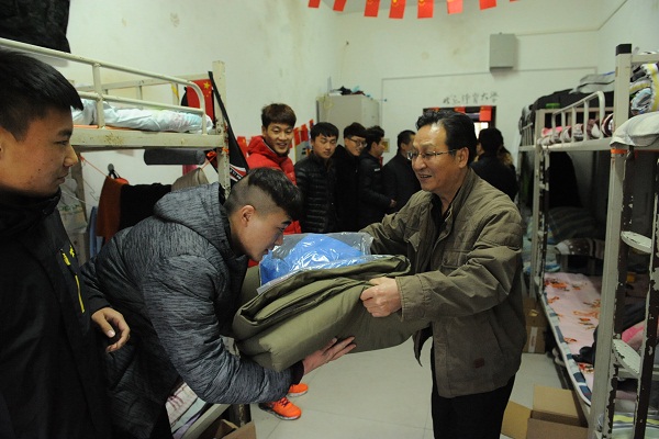 杨院长一行在校区领导陪同下到学生宿舍看望慰问同学们,并为家庭困难的学生发放棉衣棉被。杨院长代表学院向同学们表示亲切的慰问,勉励大家要勇于面对困难,自立自强。杨院长表示,学院会尽力帮助家庭经济条件困难的同学完成学业。杨院长对同学们提出了三点希望:一是希望同学们奋发图强,不负众望,以乐观向上的精神敢于克服困难、勇于面对挑战;二是希望同学们勤俭节约、勤学苦练、立志成才;三是希望同学们学会感恩,知恩图报,时刻铭记父母养育之恩,老师教育之恩,他人的关爱之恩,努力使自己成为一名诚实守信、身心健康的优秀青年。本次“关爱贫困生,寒冬送温暖”慰问活动,共为校区家庭困难新生购置棉被200套,棉服100套,用以保障困难学生安全顺利渡过寒冬,为经济困难学生送上一份冬日的温暖。