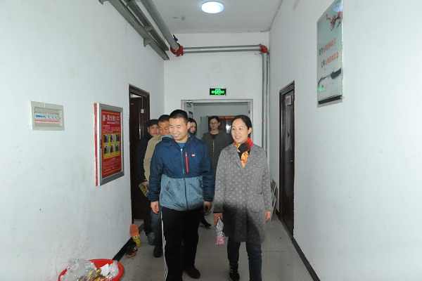 检查期间,郜书记一行到校区男生、女生宿舍、学生餐厅等场所进行检查。在查看学生宿舍、学生食堂等消防设施的配置及用电情况后,检查组针对学生违规使用大功率电器、私拉乱扯电线、寝室卫生较差等问题提出了改进意见和建议。