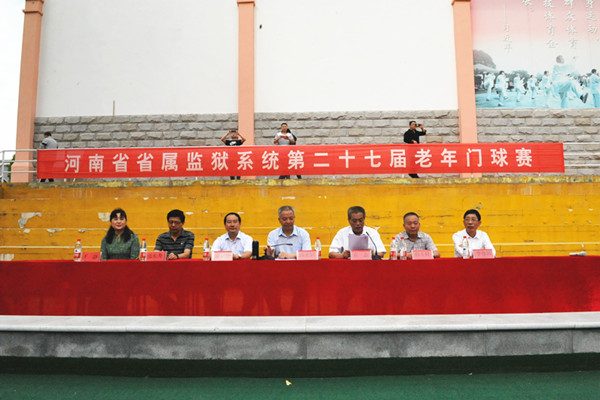 9月24日上午8点30分,河南省省属监狱系统第二十七届老年门球赛开幕式在我院登封校区隆重举行。省监狱管理局党委副书记、政委苗正钊,省第三监狱党委副书记、政委康金华、省第四监狱党委副书记、政委张东升,省三门峡监狱党委副书记、政委孙玉柱,省豫南监狱党委委员、副总经理李尊敬,省监狱管理局离退休干部管理处处长袁志,副处长王静出席本次开幕式。开幕式由河南省监狱管理局党委副书记、政委苗正钊致开幕词,省监狱管理局离退休干部管理处处长袁志宣布:“2017年省属监狱系统第二十七届老年门球赛现在开始”。
