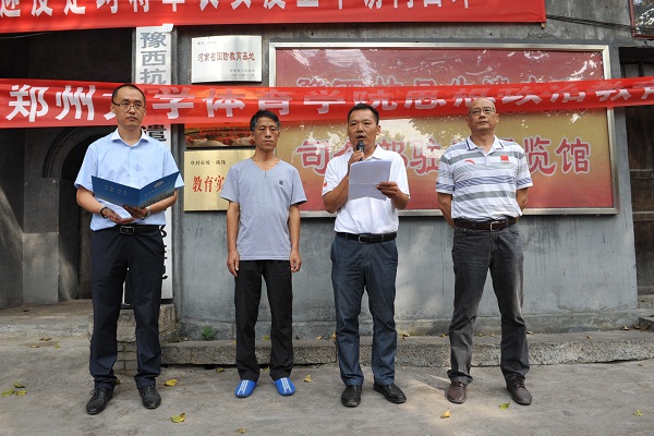 9.18日上午,郑州大学体育学院思想政治教育实践基地挂牌仪式在登封市白坪乡东白坪村豫西抗日先遣支队司令部驻地展览馆举行。挂牌仪式由院思政教研部党支部书记姚三强主持,登封校区党总支书记张广明发表讲话,思政教研部主任王东亚和白坪乡党办主任兼八路军豫西抗日司令部驻地纪念馆负责人周宏凯共同为院“大学生思想政治教育实践基地”揭牌。