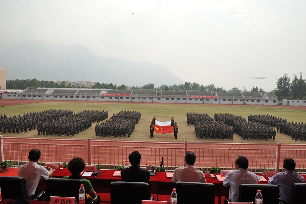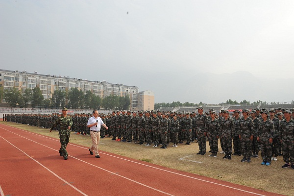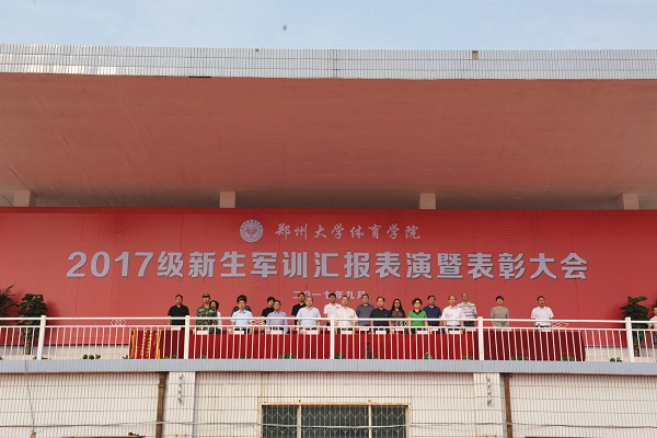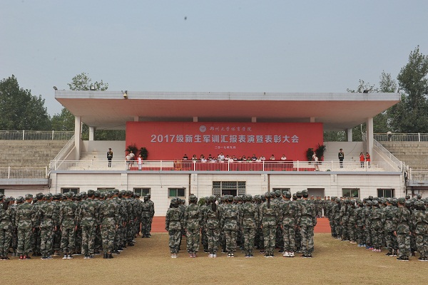9月14日上午9点,我院2017级新生军训汇报表演暨表彰大会在登封校区田径场隆重举行。我院党委书记魏真,院长张绍通,副院长刘卫华、杨国安、周毅刚,院党委副书记、工会主席刘丹宁,院纪委书记郑焕民,武警部队登封某部刘队长,院属各职能部门、各系、登封校区负责同志,全体军训教官、校区全体教职工及全体大一新生参加大会。会议由副院长杨国安主持,张绍通院长检阅方队阅兵式并代表学院向承训的武警部队登封某部赠送感谢锦旗,副院长刘卫华宣读关于表彰2017级新生军训先进集体和个人的决定,院党委书记魏真做总结讲话。