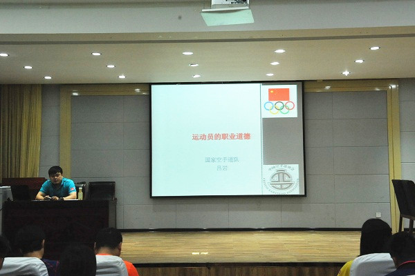 6月21日上午9点,国家体育总局拳跆管理中心空手道部副部长吕岩应邀来登封校区作《运动员的职业道德》的学术讲座,校区部分老师、国家空手道队队员及体育教育专业学生共200多人聆听了本次讲座。