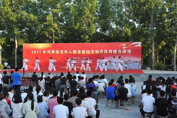 为贯彻落实习近平总书记关于体育工作的重要指示精神,在全民健身上升为国家战略的大背景下,推动我省全民健身月活动的开展,2017年5月12日由河南省老年人体育协会主办,郑州大学体育学院登封校区承办,登封市体育协会协办的“全民健身月系列活动” ——格斗运动展演活动在河南全民健身基地、河南老年人体育健身中心(郑州大学体育学院登封校区)隆重举行。