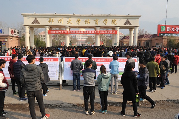 3 月17日 ,2017年河南省普通高校体育专业招生术科考试在我院登封校区拉开帷幕。本年度体育专业高招共有来自我省18个省辖市的21000余名考生参加考试,分16批次,自 3月 17日至 4月 2日,历时17天。