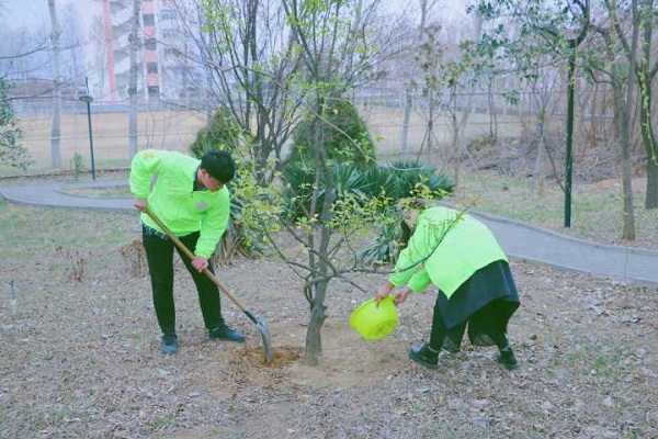 志愿者们在校区园丁师傅的协助下有序参加植树活动,干劲十足的将一棵棵充满生机和希望的树苗植入土里,一颗颗树苗在绿化带里 “安家落户”,为那里添上了一片新绿,志愿者们还对校园的角落进行了打扫和清洁。