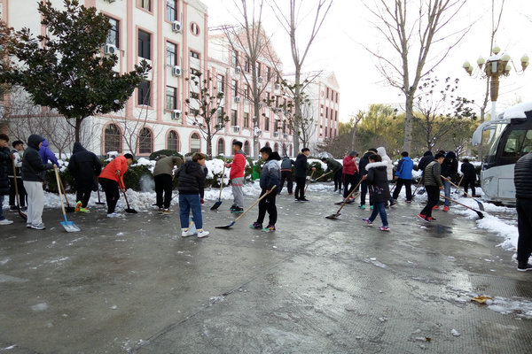 2016年11月22日的初雪给师生带来了惊喜与乐趣,但冰雪的堆积也给师生的出行带来了不便,为了师生的出行安全,11月23日、24日校区学生在辅导员老师的带领下,如火如荼地开展了一场铲雪活动。