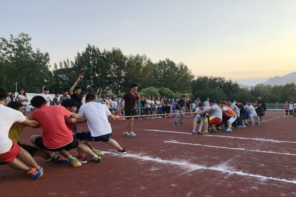 比赛中,同学们喊着整齐划一的口号,全力以赴。最扣人心弦的便是碰到双方势均力敌的时候,中间的标志物停止不动,比赛场面紧张而胶着。赛场边的拉拉队,他们虽然没有亲自上场,但都在旁边为各自的班级呐喊助威,呼喊声此起彼伏,震耳欲聋。高涨热烈的比赛气氛,感染了在场的每一个人。