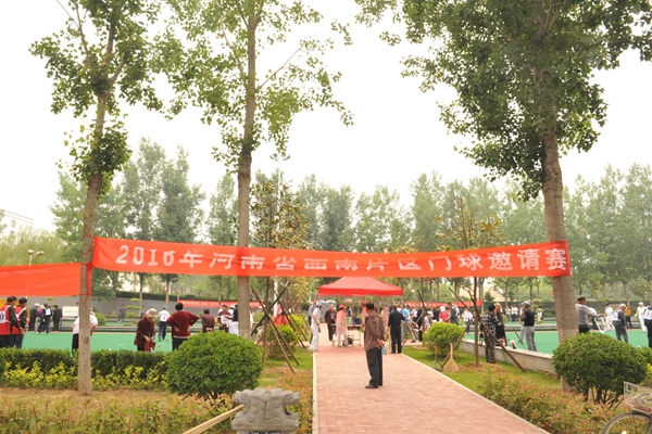 本次比赛由河南省老年体育协会主办,我院登封校区和登封市老年人体育协会协办,旨在以我院的健身基地为中心,充分发挥基地区域优势和带动作用,推动我省西南片区区域性的老年人体育健身活动的开展。同时,也是为在今年6月份即将举行的全国门球公开赛做热身和准备工作,检验基地各项运行接待能力,更好的服务于全国门球邀请赛打下良好基础。