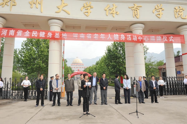 省老体协副主席兼秘书长王玮在致辞中指出,郑大体院登封校区河南全民健身基地、河南老年人健身中心的建成,是体育院校发挥优势主动积极支持全民健身、老年人体育工作的创新实践,丰富了郑大体院老年体育研究的内涵,拓宽了支持全民健身、老年体育事业发展的领域和空间,将为我省积极筹办和开展国际性、全国性老年健身交流展示活动,广泛开展全省性、区域性多层面、多项目的全民健身、老年健身交流、培训和展示活动打下良好基础,有利于打造以郑州、洛阳为引领,以郑大体院登封校区健身基地为依托,以新密、登封、荥阳、偃师、孟津、汝州30分钟交通圈为重点的区域性老年健身活动示范区,也为广泛推进和实践区域性老年健身活动示范片区建设积累了经验。把组织建设、骨干培训、项目推广、展示交流、科学辅导、健身宣传等方面逐步规范化、常态化,发挥郑大体院科研实力,以丰富老年体育研究的内涵,拓宽支持老年体育事业发展的领域和空间。