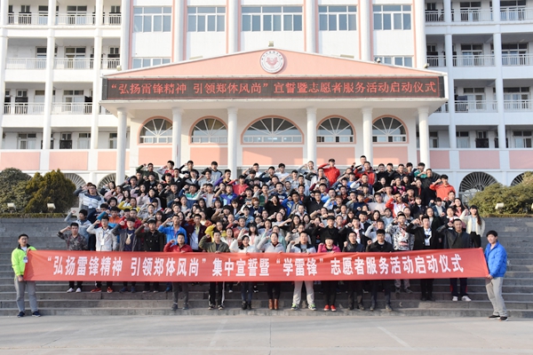 3月3日下午五点,在团总支组织下,“弘扬雷锋精神,引领郑体风尚”志愿者服务系列活动启动仪式在升旗广场举行。