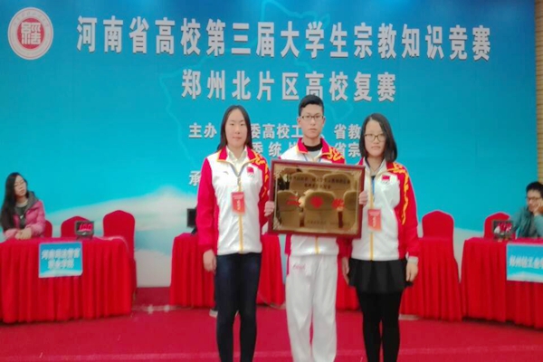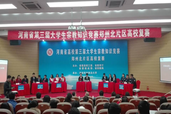 河南省第三届大学生宗教知识竞赛郑州北片高校复赛于12月8日在河南财经政法大学举行,有来自全省各地的10支队伍参加。本次大赛分为必答题、抢答题和风险题三个环节,并以小组赛和淘汰赛两种形式先后进行。经过激烈的角逐,我院登封校区代表队凭借出色的表现最终获得了二等奖的佳绩。