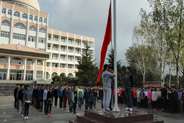 2015年10月26日,星期一早晨,深秋的天空依然昏暗,雨后的地面有些许积水,寒风中安静的校园里回响着一阵阵锵锵有力的脚步声,社体一班国旗队的同学在辅导员李高辉老师的指导下正紧锣密鼓地强化升旗训练。7点50分,随着广播站发出“升旗仪式现在开始”的口令,我们迈着从容、自信、整齐的步伐踏步走、齐步走、正步走,紧接着升旗手吴鹏博、杨明辉和程威峰走上国旗台,挎旗、整旗,伴随着广播站播出的在心中回响无数遍的《义勇军进行曲》,鲜艳的五星红旗在空中冉冉升起。收队后,我们饱满的精神、矫健的身姿、整齐的步伐赢得了校区师生的一致好评。看着那面由我们亲手升起的五星红旗在空中迎风飘扬,我们发自内心的笑了。