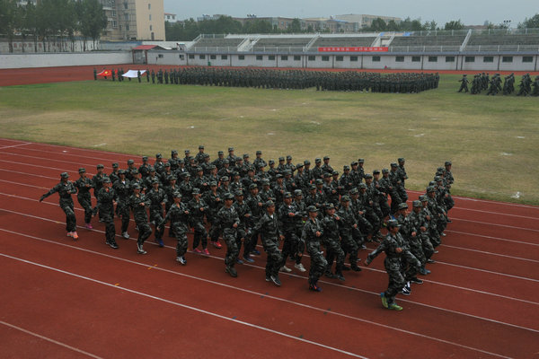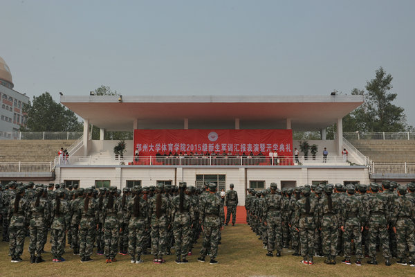 9月26日上午,我院2015级新生军训汇报表演暨开学典礼在登封校区田径场隆重举行,我院党委书记魏真、院长巫兰英、国家体育总局无线电模型运动管理中心无线电定向部主任董屹立、副院长张绍通、刘卫华、院党委副书记刘丹宁、院纪委郑焕民、中国人民解放军71262部队承训团团长杨睿、院属各职能部门、各系及登封校区负责同志、部分教职工及全体大一新生参加大会。院长巫兰英检阅方队阅兵式并代表学院向承训的中国人民解放军71262部队官兵赠送锦旗,副院长刘卫华宣读关于表彰2015级新生军训先进集体和个人的决定,院党委书记魏真发表了热情洋溢的讲话,会议由副院长张绍通主持。
