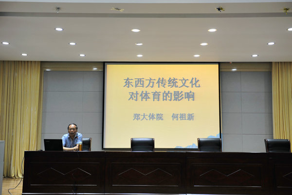何教授的讲座题目为《东西方传统文化对体育的影响》,他从文化的概念入手,详细解读了文化外延和内涵,深入浅出的论述了文化及体育文化对人类发展影响和作用;从对东西方文化的发展历程回顾,进而论证东西方文化发展差异的原因;最后何教授着重论述了东西方传统文化对当代体育发展的影响,针对出现的问题提出切实可行的意见和建议。何教授生动、活泼、风趣、严谨授课风格及渊博的知识储备给听课师生留下了深刻印象,讲座赢得师生们的热烈欢迎和满堂喝彩。