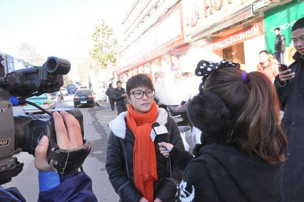 校区学生会女生部部长王云在接受电视台采访时说;寒风无情人有情,希望有更多的爱心人士能加入到我们的队伍中来,向社会传递正能量,把自己的爱心传递给那些需要的人。