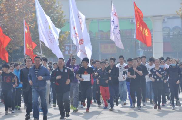 11月20日上午,2014康宝莱全国大学生迷你马拉松校园健康公益跑活动在登封校区田径场举行。上午11点53分,校区党总支副书记王鑫、团总支书记余省威等多名老师到现场参与领跑。随着一声枪响,200多名师生参与为爱奔跑。田径场上,彩旗飘飘,各个选手激情昂扬;扛旗的同学不畏劳累,带着旗帜奔跑;供水站上,志愿者热心为选手们服务;校园里留下了选手们矫健的英姿。12点15分左右,共计189名选手陆续跑完5公里的全程,至此登封校区大学生迷你马拉松公益挑战赛圆满结束。