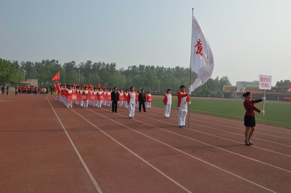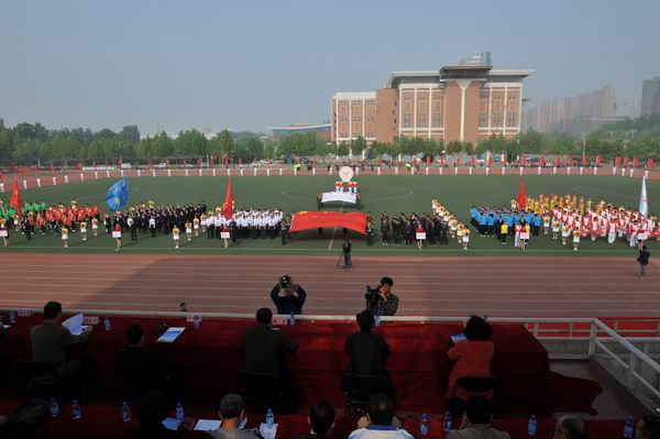 4月17日上午八点,各个代表队开始入场,登封校区作为第三名入场的代表队,60名队员身着统一校服,以良好的精神状态、整齐的方队走过检阅台,校区选送的少林武术表演在开幕式上赢得满堂喝彩。经过为期两天的激烈角逐,登封共打破学院记录两项,荣获11个项目的第一,最终以527分的总成绩夺得甲组团体第一名的好成绩。此外,登封校区还获得本次学院田径运动会精神文明奖。在闭幕式之后,学院领导魏书记与登封校区代表队合影留念。