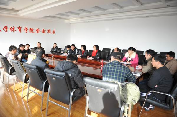 12月6日,我院副院长周毅刚一行到登封校区检查教学工作,周院长一行在校区领导陪同下到教学楼、田径场、综合训练馆检查教师上课情况,校区领导就近阶段教学情况作了简要汇报。为进一步深入调研了解教学情况,周院长一行与校区领导、部分教师进行座谈,部分教师就自身在教学和工作生活中遇到的问题和困难发了言,周院长和校区领导一边记录,一边不时插话询问有关情况,对部分问题予以现场解决。整个座谈会气氛热烈、活泼,教师们畅所欲言,充分表达了自己的想法和意见。周院长最后总结发言时指出,限于我院两地办学的现实条件,广大教师客服重重困难和不利因素,舍小家,顾大家,表现出良好的敬业精神,特别是长期驻扎在登封校区的工作人员,更是以校为家,无私奉献,她对大家的这种长期的辛勤的工作和奉献表示感谢,对一年来的教学工作表示肯定。