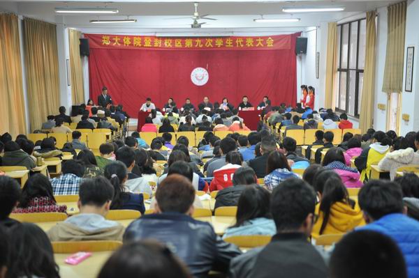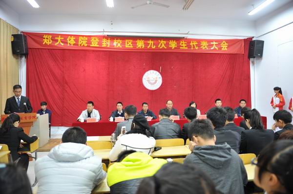 2013年11月9日上午,登封校区在教学楼一楼的阶梯教室隆重召开了第九次学生代表大会 。出席本次大会的有郑大体院登封校区党总支部书记郑焕民、 院团委副书记刘亚荣、登封校区党总支副书记王鑫、院团委组织部部长范磊、体育旅游与外语系团总支书记王俊峰、体育新闻与管理系团总支部书记程鹏,以及上一届学生会代表,各班团支书和各班学生代表。大会由登封校区团总支书记余省威主持,此次会议审议了上届学生会的工作报告,并选举产生了以朱晨晨为代表的新一届学生会。