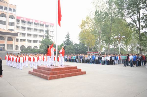 10月8日上午8时整,登封校区全体师生在升旗广场举行本学期首次升旗仪式,伴随着雄壮的国歌,一面鲜艳的五星红旗冉冉升起,校区领导、老师们、同学们肃穆站立,唱国歌,行注目礼。周升旗仪式是登封校区沿袭多年的优良传统,也是对大学生进行爱国主义教育的重要阵地。据悉,执行本次升旗任务的是2013级民族传统体育套路班的同学们。
