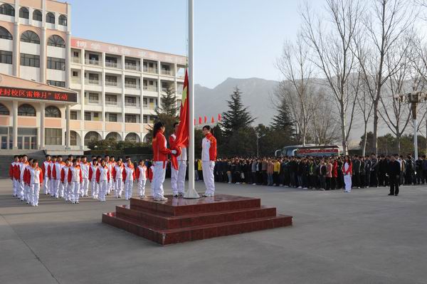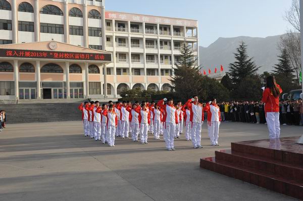 2013年3月4日上午8时,登封校区全体师生在国旗广场列队集合,共同参加雷锋月升旗仪式。