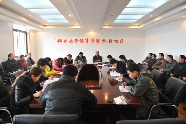 2月24日上午,登封校区在办公楼三楼会议室召开新学期工作会议,校区全体教职工参加会议,会议由登封校区党总支书记郑焕民主持,校区主任胡玉玺就2013年度登封校区工作要点做了阐述并提出要求。