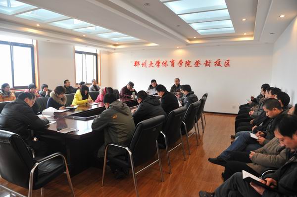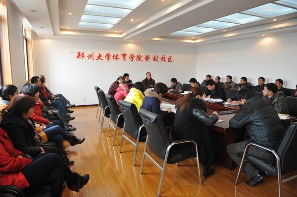 郑书记首先就新学期开学准备工作作出安排,针对新学期学生管理、教学器材配备、教学设施检修、团学工作安排、教师食宿安排、学生各项后勤服务保障、校区绿化工作及2013年河南高招体育专业术科考试筹备等方面的工作提出具体要求和工作目标。胡主任就校区2013年工作重点做了详细解读,从工作指导思想、工作思路、工作重点三个大的方面来阐述新学年的核心工作。着重加强思想和作风建设,充分发挥党员在工作中的模范带头作用;深化制度建设,完善绩效考核,优化教学环境;重视科研工作,提高科研能力;加强校风建设,全面提高学生管理水平,优化育人环境;多方筹措,完善校区基础建设,美化校园环境。胡主任就完成上述重点工作明确具体部门或责任人,并就有关工作内容提出明确要求。