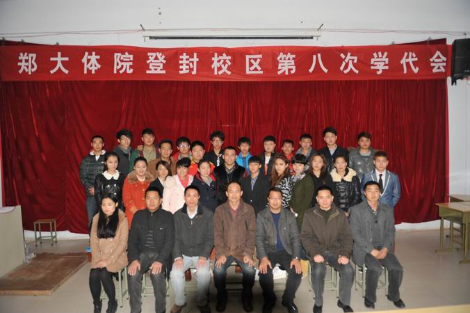 登封校区第八次学生代表大会于2012年11月24日在登封校区教学楼阶梯教室隆重举行,登封校区党总支书记郑焕民、登封校区党总支副书记王鑫、院团委组织宣传部部长范磊、体育系团总支书记刘志伟、运动系团总支书记刘晖、民族传统系团总支书记袁晋文、旅游外语系团总支书记王俊峰、新闻管理系团总支书记程鹏、艺术系团总支负责人李中山老师等出席了开幕式。103名学生代表和校区151名学生干部候选人参会,大会按程序民主选举了校区第十届学生会,大会在领导和全体代表及工作人员共同努力下,取得圆满成功。