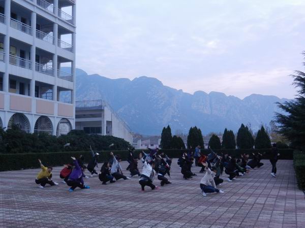 跨入大学生活已近一个月时间了,同学们每天早上都在辅导员老师的组织和带领下开展丰富多彩的早操活动。我们体教班的同学们用班费购置了跳绳、毽子、呼啦圈等,还有些班级学习武术基本动作、太极拳、健美操等多种活动形式。同学们配合默契的踢毽子,三五成群认真细致的学习五步拳,欢声笑语的跳绳,列队新颖动作优美的练习健美操,晨练场上一幅生机盎然的风景画,充满着朝气蓬勃的景象。早操是登封校区多年来的优良传统,相信各种丰富多彩的早操活动使同学们的大学生活更加充实。