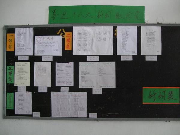 在全党和全国人民以高昂的精神风貌喜迎中国共产党第十八次全国代表大会召开的日子里,我校举行校园书画、摄影、诗词大赛,丰富新生校园文化生活,引导新生树立爱党爱国、拼搏创新的精神品质。