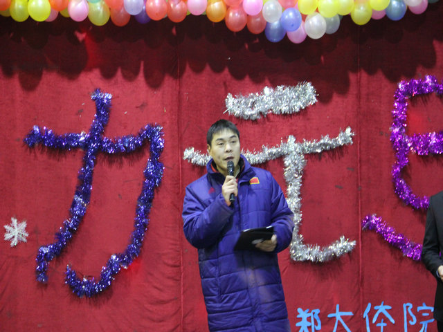 历经春华秋实,在拼搏的汗水中,我们迎来了新的一年,信心满怀,辞旧迎新。12月27日晚19点整,登封校区综合训练馆内张灯结彩,欢乐喜庆, “郑大体院登封校区2012年元旦游艺晚会”在此隆重举行,在校区巡视的国家体育总局跆拳道拳击运动管理中心拳击部部长岳岩、河南省体育局重竞技管理中心主任李岩、副主任张培杰、校区党总支书记郑焕民、张志磊训练团队及校区700余名师生现场观看了精彩演出。