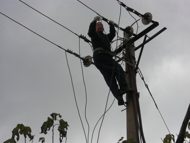 11月30日8:10分,学生食堂突然停电,后勤管理科接到电话通知后立刻派人现场查看,经过工作人员仔细检查,发现进线线杆上零线断路后立即制定维修计划:在不影响正常教学、办公的情况下对校区西山线路分支进行停电作业。校区电工张东兴同志克服天冷、杆湿等不利条件迅速用准备好的工具爬杆进行高空作业,经过固定、剪线头、刨线、卡线等熟练地操作流程圆满的完成此次维修,9:20分校区西山线路正常供电。