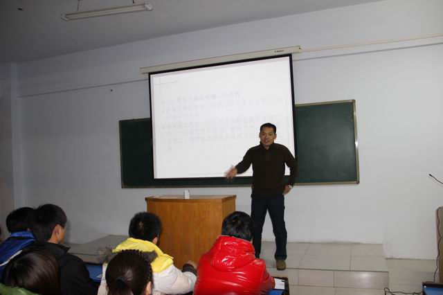 2011年11月9日晚7点,登封校区学生科在教学楼第七教室为2011级全体学生会干部和班级干部举行了一场题为“如何当好一名优秀的学生干部”的专题讲座,校区党总支副书记、学生科科长张广明亲临主讲,各班辅导员及全体学生干部聆听了讲座。