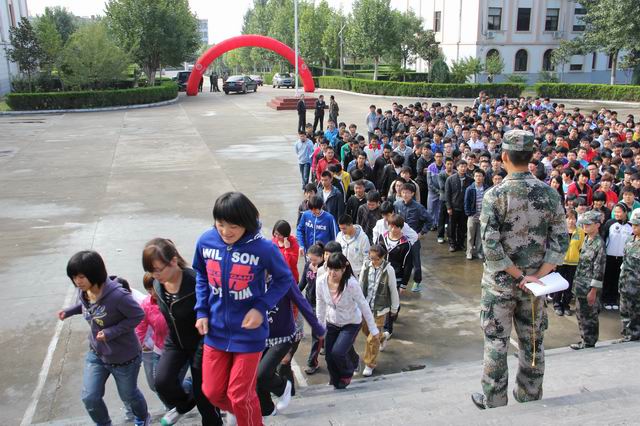 在教师代表、新生代表和教官代表分别发言等议程全部结束后,军训教官按计划带领各班开始分队正式训练。