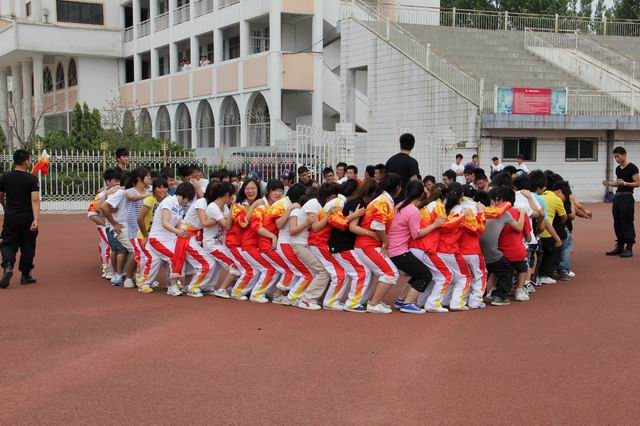 2011年6月9日,由校区团总支组织的学生素质拓展训练活动在田径场进行。本次活动邀请我院体育旅游与外语系十三位相关专业的学生做教官,活动先从简单的行动一致练起,然后主要进行了“驿站传书”和“同心筑长城”等训练。这些看似简单易行的团体活动,却让同学们在愉快、积极的参与中学到了知识,领悟了道理,通过亲身体验来挖掘自己的潜能,从而提升心理素质。