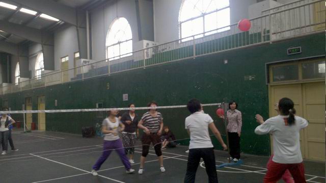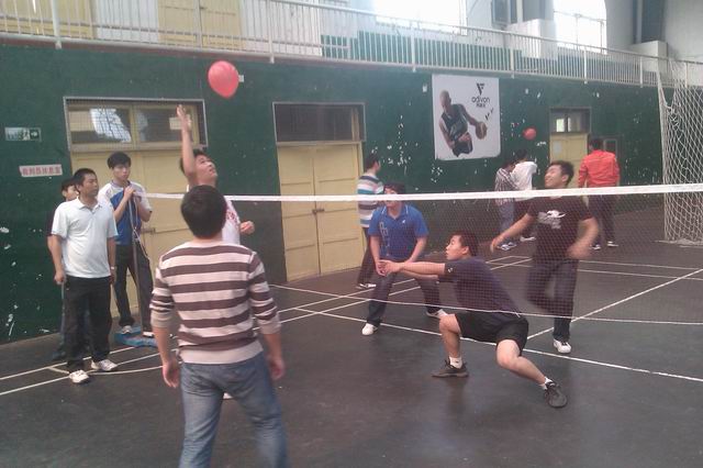 2011年5月27日下午,在辅导员樊永锋老师的带领下,2010级体育师资二班班委组织全班同学以宿舍为单位进行了“气排球比赛”趣味游戏活动。每个宿舍选派三人参赛,用气球做道具,在羽毛球场地上采用适当修改的排球竞赛规则进行激烈的比赛,场上同学既有潇洒的动作,又有滑稽的姿势,场下同学看得合不拢嘴。整个比赛场面嬉笑打闹,一片欢腾,让同学们渡过一个愉快的下午。