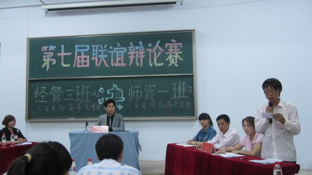 决赛在2010级体育经营管理三班和体育师资一班之间进行,双方就人生道路上“机遇更重要”还是“奋斗更重要”这一辩题展开了精彩的辩论。双方辩手你来我往,针锋相对,引经据典,妙语连珠,唇枪舌剑中摩擦出智慧的火花,思维碰撞里闪耀着绚丽的华彩。全场笑声迭起,掌声不断,经过九位评委的投票表决,最终体育师资一班夺得冠军,体育经营管理三班获得亚军,民传二班获得季军,新闻三班和民传二班获得最佳组织奖,师资一班四辩宋珂同学获得决赛“最佳辩手”称号。