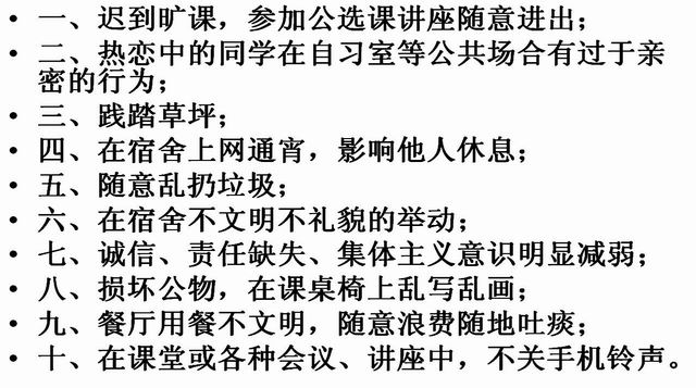 大学生作为特殊的群体,承担着传承和创造优秀文化的重任,代表着主流和未来,文明对我们来说,不应只是一种习惯和理念,更应是一种责任和光荣,减少并杜绝校园不文明现象需要每一位大学生的积极参与和不懈努力。