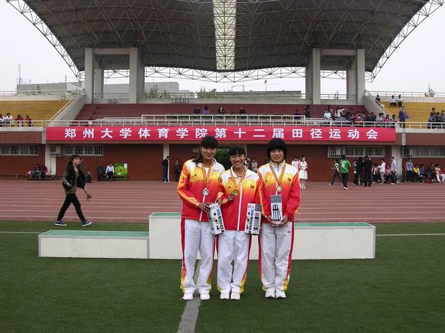在本届运动会上,我们田径班参赛29人,共获得金牌20枚、银牌11枚、铜牌12枚,并打破了6项赛会纪录,其中女子4×